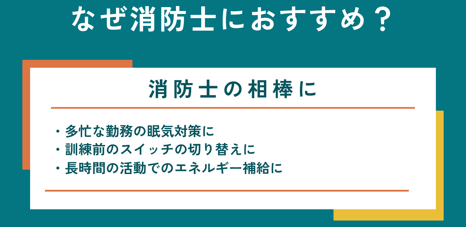 眠気対策としてはもちろん、頭がスッと冴えて、搬送中の判断力や集中力が明らかに違いました。