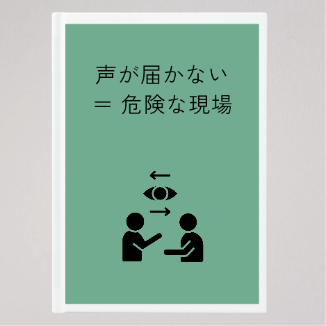 伝達といえば、無線や声による指示を思い浮かべる人が多い。確かに言葉は便利で、多くの情報を一度に伝えられる手段です。しかし、災害現場という特殊な環境では、言葉はしばしば頼りになりません。「危険な現場=声の届が届かない」だからこそ、非言語の伝達手段を再評価する必要があります。